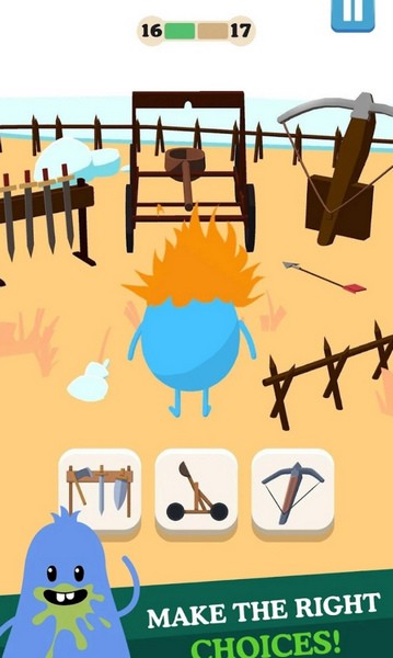 蠢蠢的死法蠢蠢的选择破解版是一款画风可爱的解谜游戏。在这款游戏中玩家需要解开每一道关卡的谜题来拯救同伴,如果选择了错误的答案那么同伴们就会遭受各种各样奇怪的死法,由玩家来为他们选择什么样的死法。游戏设置的谜题大多是脑筋急转弯,玩家需要开动脑筋去根据已有的线索来解开谜题。本页面提供免广告无限金币的破解版。