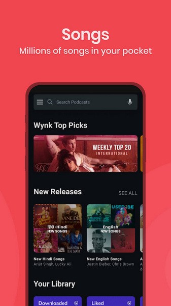 Wynk Music去广告版是一款很好用的音乐播放器软件,软件内为用户们提供了海量的音乐资源,并且各种各样的音乐资源都有,不管是国内的还是国外的都包含在内,此版本还为大家解锁去除了广告,在这里大家可以享受到非常高品质的音质,而且音乐也可以离线下载,支持mp3mp4、wav、m4a等常见的格式,为用户带来非常好的音乐播放体验!