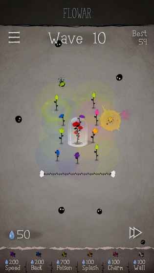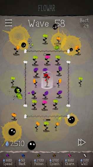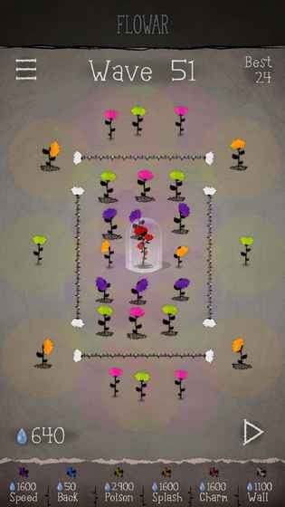 花塔之战是一款非常有意思的创意塔防游戏,小清新的画风,玩家需要通过布置各种类型的花来保护玫瑰,每种花都有自己的特点,你需要使用合理的布局才能抵挡住敌人对玫瑰的进攻。简约舒适、复古文艺的游戏画风,趣味十足的游戏玩法,还有超多超丰富的游戏道具和其简单易上手的游戏操作,能够带领玩家们享受不同于其他塔防游戏的艺术气息。玩家们需要保护好那朵红玫瑰,通过合理、巧妙的利用好那六朵不同颜色的花朵所具有的不同能力,让玫瑰存活得久一点,更久一点。