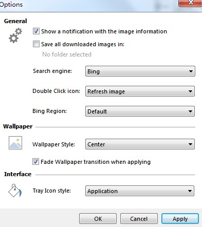 不过,如果你不太喜欢每天的必应图,还可以手动更新,灵活得很。软件还支持淡入淡出的效果,感觉挺酷的。总体来说,BingSnap功能齐全又不占内存,是个不错的工具。
