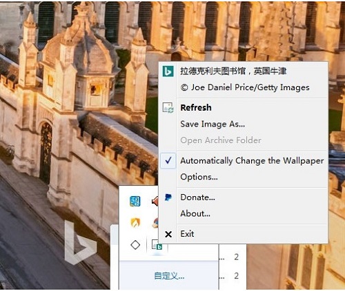 你可以取消勾选BingSnap系统托盘菜单中的【automatically change the w allpaper】菜单项,然后每天打开必应网站一次,如果觉得当天的必应图片可以接受的话,点击【refresh】菜单项就可以立刻让其变为壁纸,如果开启了保存文件功能,文件夹下同时也会有壁纸文件。