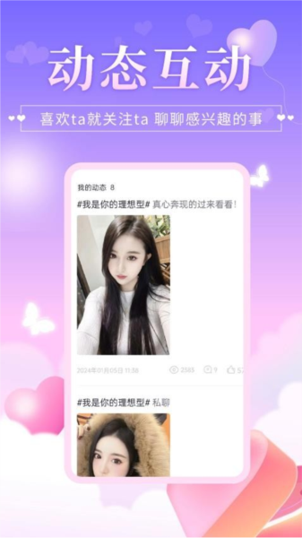 3、社区分享:用户可以在软件内发布动态、分享生活点滴,增加彼此了解,拉近心灵距离。