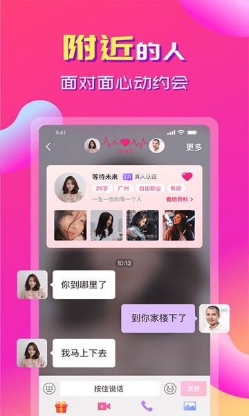 通过文字、语音、图片、视频等方式让附近的“他”和“她”快速配对