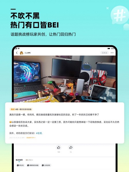3、不吹不黑,热门有口皆BEI,话题挑战榜玩家共创,让热门回归热门,资讯全面多样
