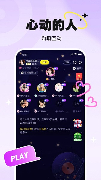 个性化资料的填写将帮助您更快地找到懂您的灵魂的朋友。此外,app提供丰富的娱乐pk模式,在派对房里让您欢乐不停,还有更多派对小游戏,帮助您快速破冰,结识更多有趣的人。