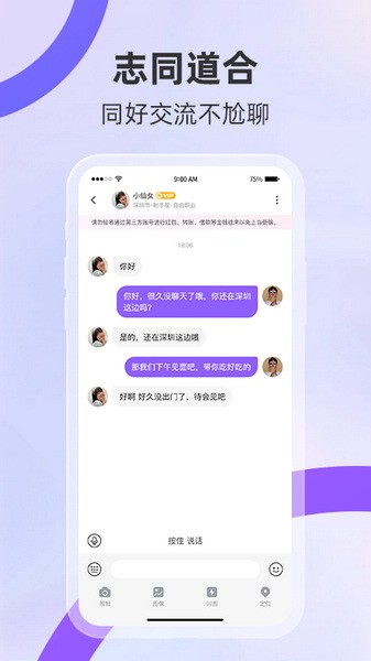只要拿起手机就能交到好友,拉近人们之间的距离,建立良好健康的社交关系,动动手指轻松互动,找到你的另一半,感兴趣又想脱单的朋友们快来下载体验吧~