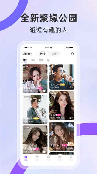 聚缘公园app是一款安全又可靠的聊天交友软件,严格的双重认证系统让每一位通过审核的用户们都可以放心大胆的交友。相当齐全的个人资料和详细的标签、兴趣等描述可以帮助大家更快找到谈得来的对象,更有便捷的筛选功能,让交友这件事情变得更加高效。此外,用户们完全可以在聚缘公园app上发布各种动态来记录自己的日常生活和每一个精彩的瞬间,也能够浏览其他用户发布的生活动态并点赞评论等,迈出社交的第一步。聚缘公园软件有着多元化的社交互动玩法,不同性格的用户们都可以在这里找到更适合自己的交友方式。