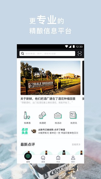 酒花儿app的特色功能丰富多样。你可以通过啤酒点评了解其他用户对各类啤酒的评价,选择适合自己口味的啤酒和精酿啤酒。扫条码功能能够帮你解决没喝过的新啤酒的困惑,轻松获取啤酒的详细信息。酒吧地图让你随时了解周围的精酿啤酒酒吧、超市和餐吧,知道哪里的服务好、环境优越、节目丰富,还能享受酒花儿提供的全国酒吧导航和网友真实点评。精酿社区则提供了一个与酒友交流的平台,你可以约美酒、学习自酿技术,互通精酿配方,结识志同道合的朋友。酒花儿还定期提供精酿资讯,让你了解啤酒界的最新动态。