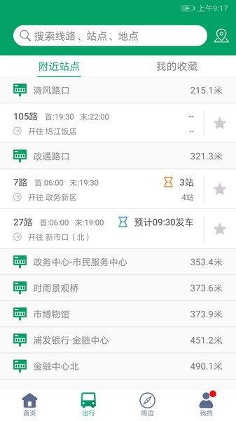 1、Palm公交电子站牌:点击即可查询附近公交站点信息,帮助用户快速上车。