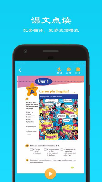 2、点读、全文朗读,区间复读,语速灵活控制,多种功能满足孩子的学习需求。
