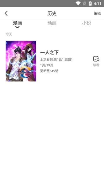 3、点击进去就能查看到各种漫画小说动画的历史记录了