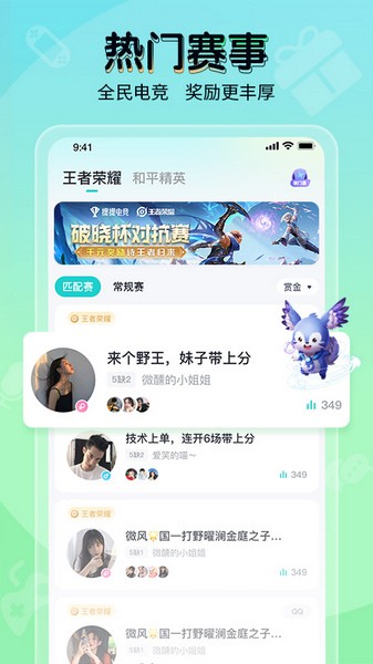 游戏组队、扩列交友、唱歌上麦、情感咨询等多种互动娱乐场景,娱乐上分两不误。