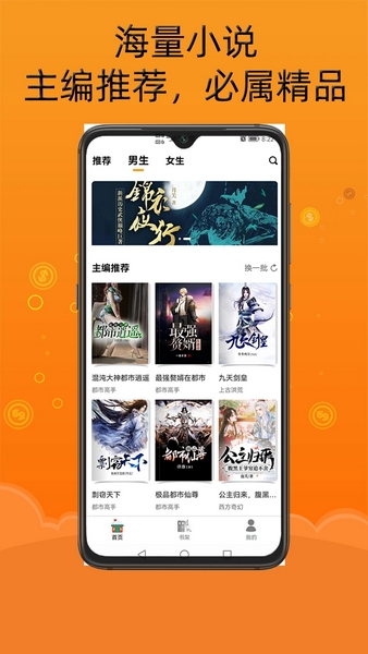 3.根据用户的阅读历史和搜索历史,每天为用户推荐各种优质小说,很多都是全网爆款,值得阅读。