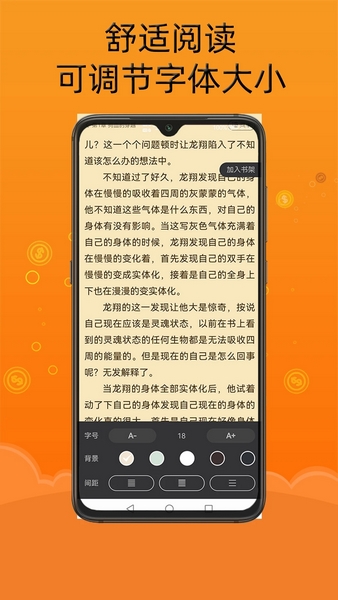 1.支持自定义阅读设置,阅读背景、字体、行间距、字体大小、颜色等等都可以改变,怎么舒服怎么来。