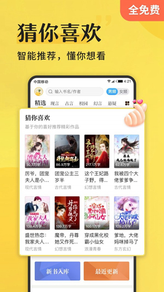 个性化定制阅读喜好,特色男生、女生专门读书频道,不同阅读空间,更懂你的小说阅读软件软件!