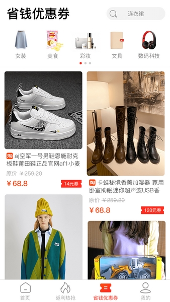 5.需要搜索优惠券,可以在首页的搜索栏里面来查询,输入自己的关键词就可以领取到优惠券。