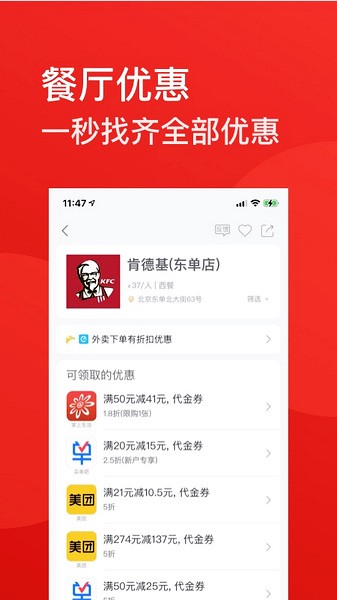 1、省点让你1秒找齐所在餐厅20个APP里的优惠。