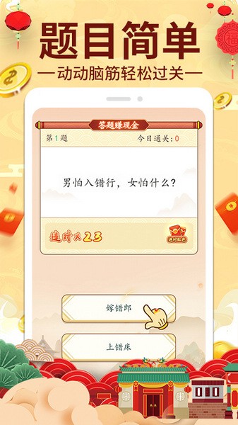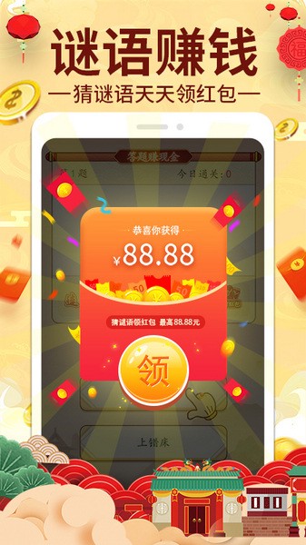 谜语赚钱app是一款又好玩又能够赚钱的休闲益智类小游戏,游戏中为玩家们提供了大量的游戏关卡挑战,里面拥有非常多的谜语,而且全都是经过过精挑细选的,类型多样,给玩家们带来了趣味体验。不仅如此,玩家们只要成功出谜语就可以闯关成功获取红包奖励,答题越多获得的奖励也就越多,听着是不是非常心动呢,快动用自己智慧来解出更多的谜题,选择正确的答案,成功答题闯关吧!