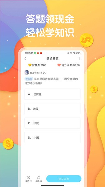 这款答题赚钱APP真的挺有意思的!它不仅能让用户通过回答各种题目来赚取智慧点,还能兑换现金提现。题目的难度不大,适合休闲娱乐。而且软件里还有短视频内容,看完视频既能放松又能学知识,真是娱乐学习两不误。