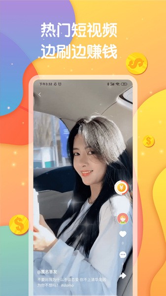 2、热门短视频,边刷边赚钱,看明星八卦、电影追剧,学时尚穿搭、科技文化,海量视频解答,轻松涨知识,承包你的休闲时间