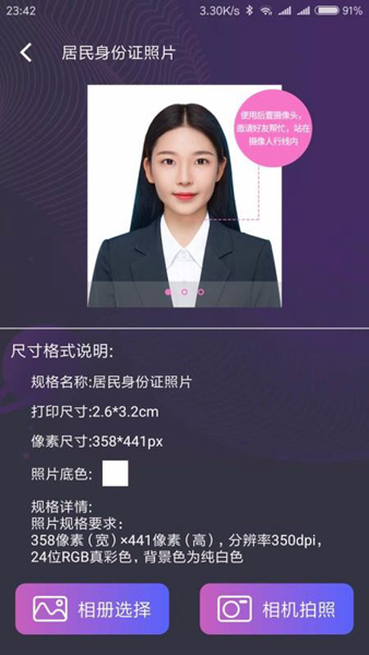 3、选择尺寸之后点击相机拍照,可以立即拍摄证件照