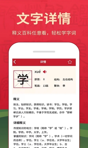 这款字典词典大全最新版真的超级实用!无论是查汉字还是成语,都能轻松找到。它收录了新华字典、成语词典还有故事,内容特别丰富,而且支持中文、拼音、部首等多种查询方式,想怎么查就怎么查, totally方便。