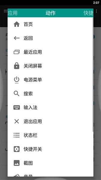 1、首页、返回、最近应用、关闭屏幕、沉浸模式等。
