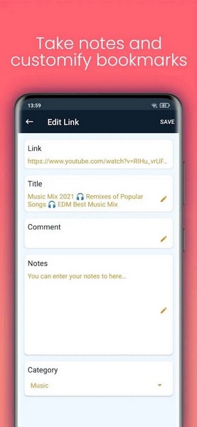不仅如此,这个应用程序也给你带来了独特的体验。具体来说,用户可以访问Note。在这里,你可以自由地表达你的想法和感受,或者有时表达与你已经、正在和将要阅读的链接相关的事情。除此之外,通过LinkStore欣赏感兴趣的内容和直接欣赏音乐、电影没有什么区别。此外,您还可以根据自己的评分标准对书签进行评分。