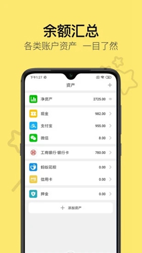 4、软件支持各类账户资产的余额汇总,让用户对自己所有的资产情况一目了然;