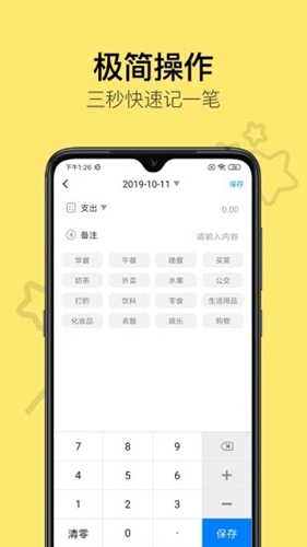 1、软件的操作非常的简单,所以三秒就能快速记录一笔账,非常的省时、省力;