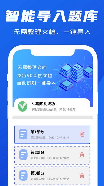 1、实时在线进行题库导入,随时加入学习中