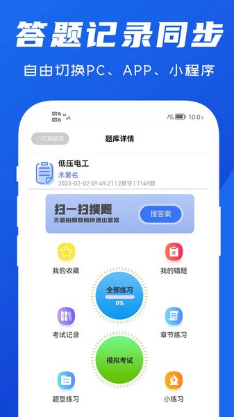 试题通是一个功能强大的题库软件,支持用户自己导入题目或者使用别人分享的题库,操作简单方便。它的特色包括实时在线导入题库、快速扫码答题以及多种学习模式,满足个性化学习需求。对于已经习惯其他学习类应用的用户来说,上手几乎没有任何难度。