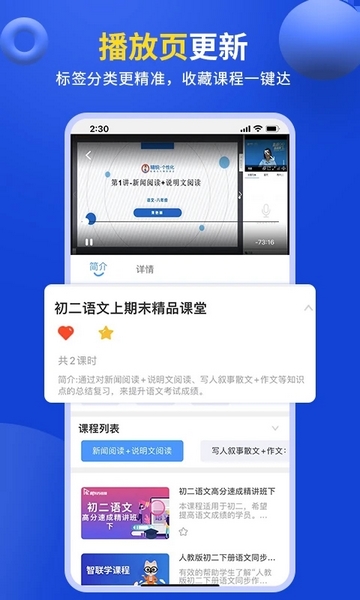 1、课程同步,选择课程即可获取到与课本内容相符合的课程;