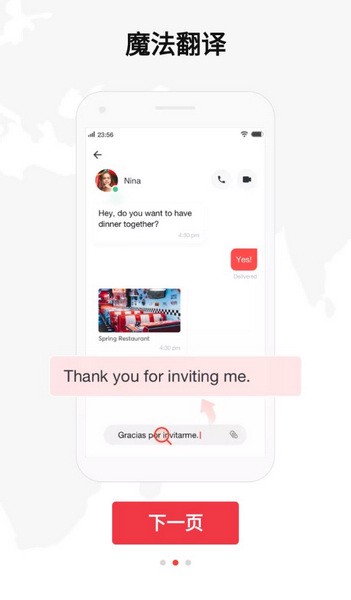 •对话翻译:翻译双语对话,支持33种语言,47种口音。