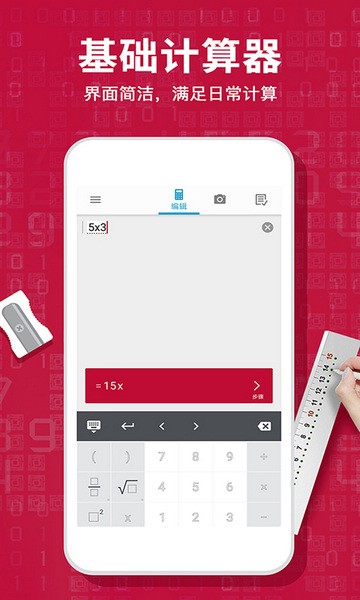 扫描后您还可以在左划页面编辑算式,点哪儿改哪儿,即改即出答案,上手非常简单。不仅如此,您只需右划页面就可以将看详细的解题步骤,一些方程会在下方绘制出图形,直观简明,还可以收藏问题。
