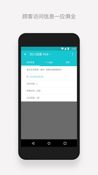 美洽会智能抓取顾客的访问信息,还可以和你的会员系统绑定,传送顾客的身份、订单等信息给客服。有了详细的顾客画像,客服将更有可能为顾客提供满意的服务。
