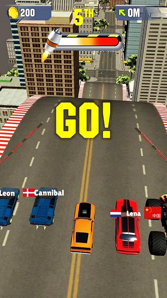 每当玩家飞行过程中,松手指便可进行滑翔飞行,而再次的按压可以让汽车做俯冲姿态,接着往复循环,直至抵达目标终点!