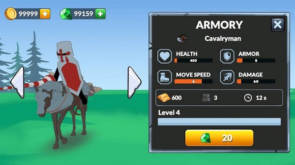 火柴人帝国之战无限钻石版为玩家们准备了一场场激动人心的火柴人战斗,大量的策略战斗内容和炮兵、骑兵等丰富的兵种类型大大增加了游戏的可玩性,也增加了大家排兵布阵的难度。升级兵种之后还能够解锁更多的强大能力,属性上也会得到提升,无限的钻石金币也能够提高大家的胜率。此外,玩家们也能够在游戏中尝试更多的新奇策略,轻松获得最后的胜利。