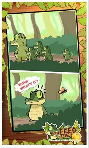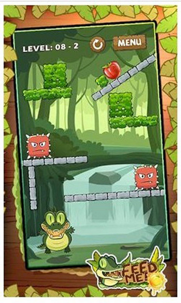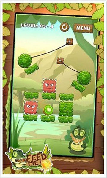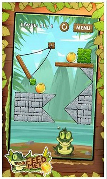 《我要吃果果》(Feed Me)中,迪欧是一只新生的鳄鱼,在广袤的树林里,它迷了路,肚子非常饿,现在他只有一个请求:吃水果!你的目标就是清除障碍,将水果喂到迪欧的嘴里,同时还要注意不要让带刺的小怪兽落到迪欧的嘴里。超过36级挑战,让你在休息的时候获得乐趣。