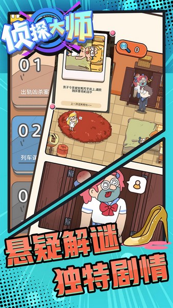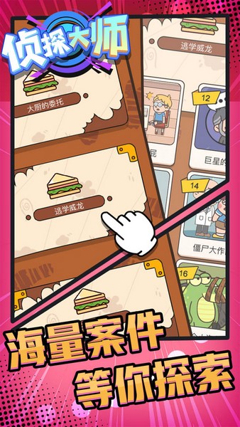 侦探大师是一款十分有趣的推理游戏,采用的是比较可爱的卡通画风。玩家需要根据场景中有限的线索来找出最终的答案,而其中有很多对象都是可以互动的,并且还有机会获得全新的更加关键的线索,帮你顺利解开谜题。游戏中案件的类型也是非常多样的,玩家可以欣赏到各种故事,并且还有多个道具可以协助破案,如果遇到困难了就可以考虑使用道具。