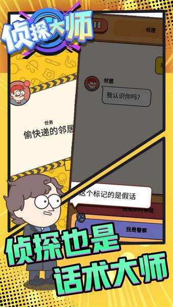 《侦探大师》是一款充满趣味的推理游戏,画面风格超级可爱,玩法也很简单,但要解开谜题可没那么容易。游戏中有很多互动元素,你可以和各种物品对话,获取关键线索,甚至还能用道具帮忙破案,简直像是一位真正的侦探!游戏里的案件类型特别多,每个关卡都有不同的故事,剧情扑朔迷离,非常考验你的脑力。玩这个游戏不仅有趣,还能锻炼思维,感觉自己就是福尔摩斯附体呢!如果你喜欢解谜和推理,这款游戏绝对不能错过,真的停不下来啊!