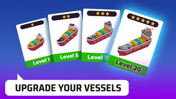 解锁新设计的大型船舶,增加港口利润。升级码头,发展成大码头,征服大海!