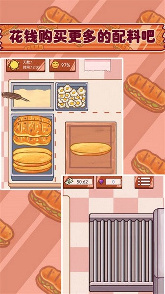 游戏中还有丰富的配料可供选择,比如意大利辣肠、猪肉粒和洋葱等,这让三明治的制作过程变得趣味横生。另外,游戏还设计了各种任务,玩家需要开动脑筋满足超过100位性格各异顾客的需求,体验不一样的经营乐趣。