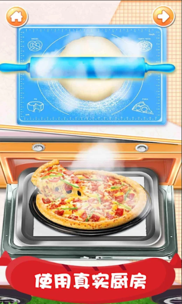 2,轻松诙谐的音乐环境衬托出游戏的休闲氛围,享受制作披萨、烘焙披萨和切披萨的乐趣吧,让每个人都欣赏独特经历。