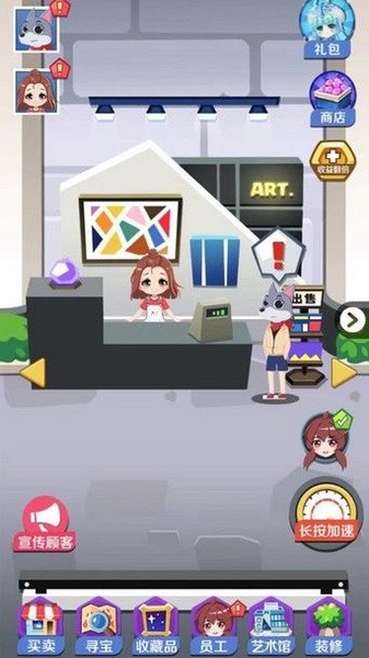 玩家可以体验收集到各种艺术品,古玩、字画、珠宝,也可以招聘自己喜欢的员工,让自己的艺术馆越来越豪华。