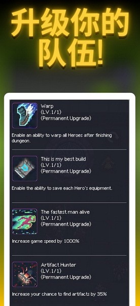 这款游戏真的挺有意思的!作为一名地牢冒险迷,我觉得它完全符合我的口味。首先,破解版去掉了广告,这点超赞,玩起来更顺手了。英雄解锁成本只有1,这也太划算了吧,以前总得攒钱解锁,现在随便玩!