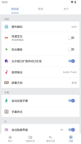Reex 设置里面也很丰富,包括解码设置、快速定位、后台播放、音频输出、字幕自定义、手势设置等等。