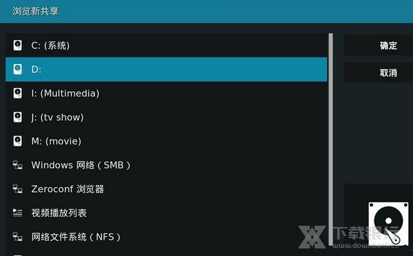 3、本机就选对应的盘符;局域网共享的windows系统选SMB;linux系统(NAS等设备)选NFS。