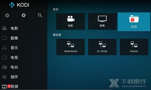 1、打开Kodi,左侧菜单找到“视频”,右侧从“类别”里选择“文件”