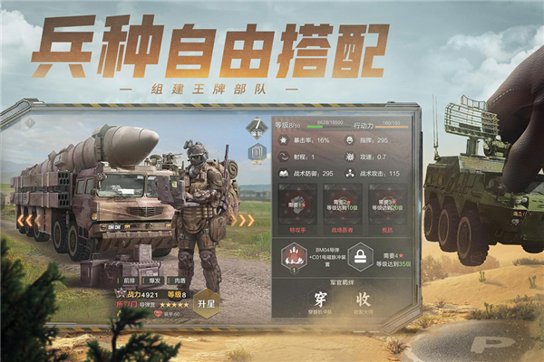 强力部队养成,部队可通过【升级部件】和【获得技能】的方式提升战力。